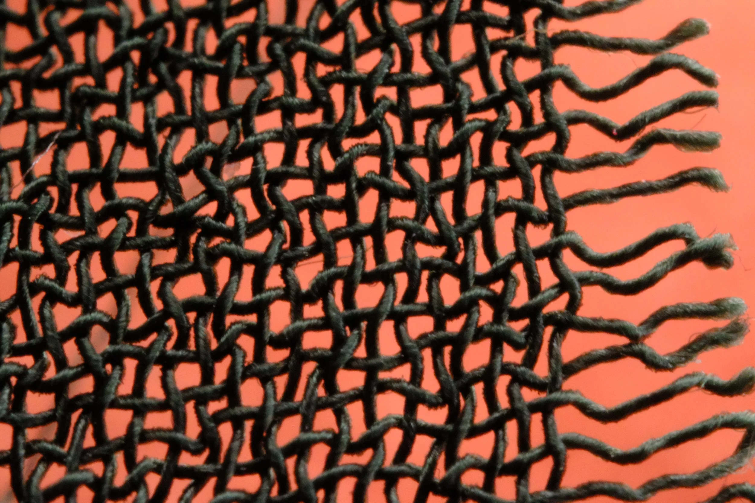 As an extension of my research, I started to photograph the fibers and textiles that I am drawn to handle and work with. To explore “what my hands see,” I use a digital camera, handheld, and look at the material through a macro lens (no filter). I continue to discover landscapes that are, paradoxically, surprising and familiar.